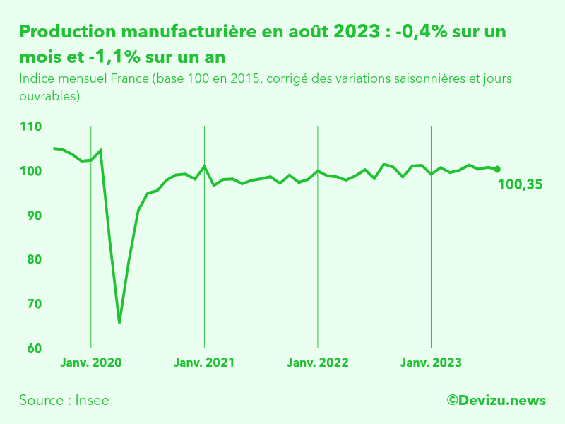 La production manufacturière en France a diminué de 0,4% en août 2023